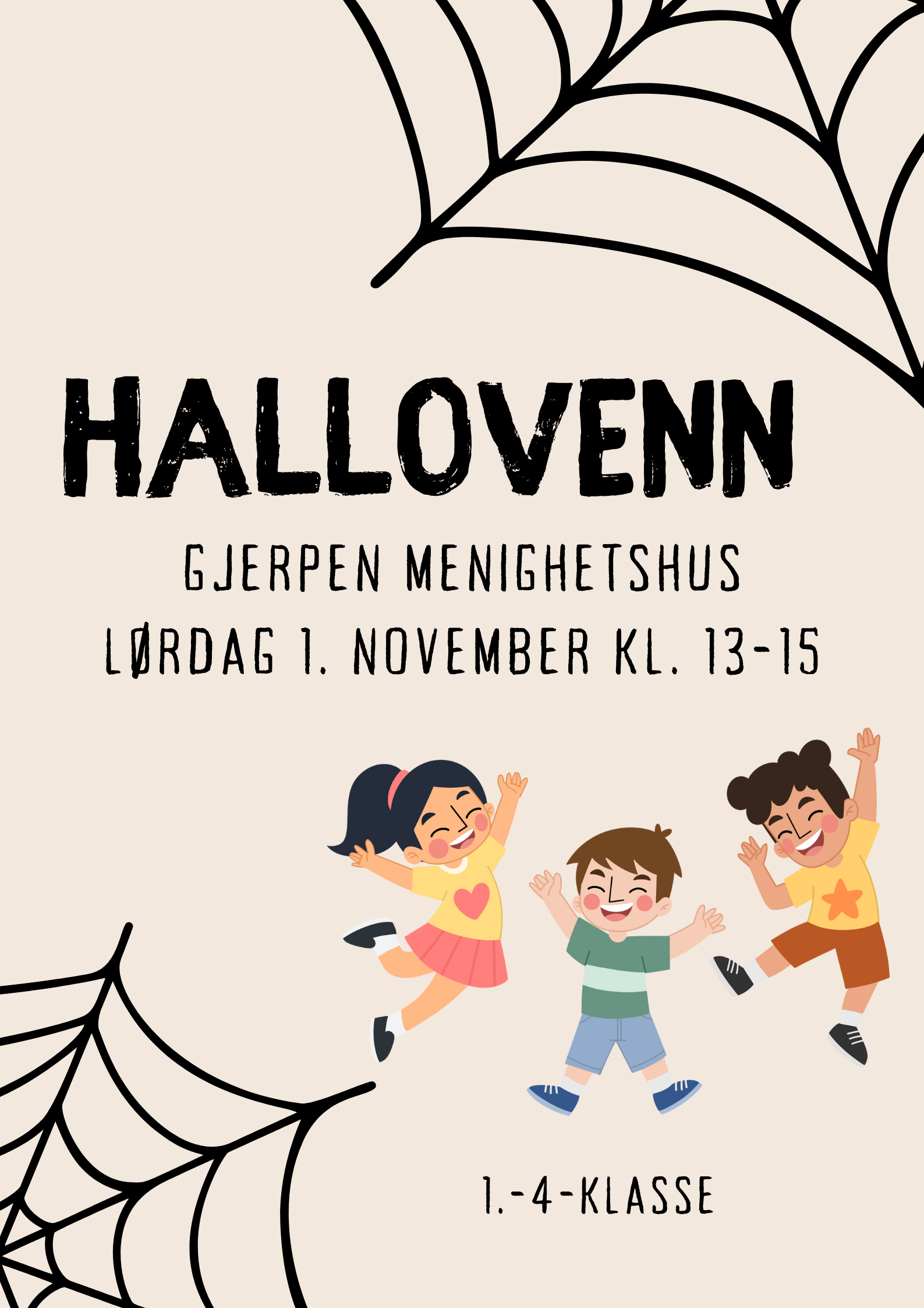 Lørdag den 1.november kl. 13:00 – 15:00 er det Hallovenn på Gjerpen menighetshus, for deg som går i 1.-4. klasse. Vi kler oss ut i mor...