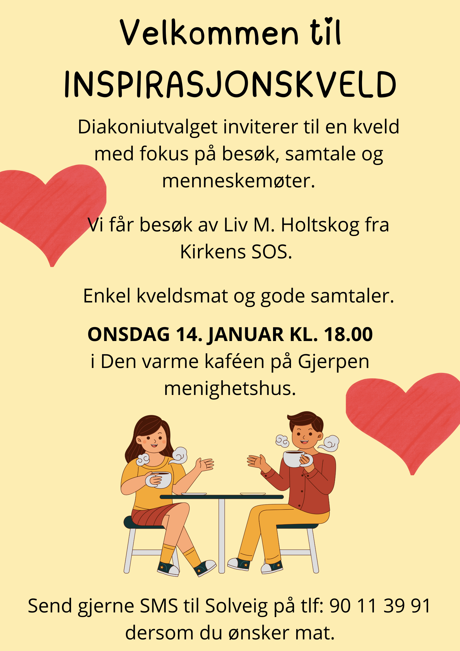 Diakoniutvalget inviterer til "en inspirasjonskveld for besøkstjenesten", onsdag 14. januar kl. 18.00 Vi setter fokus på besøk, samt...