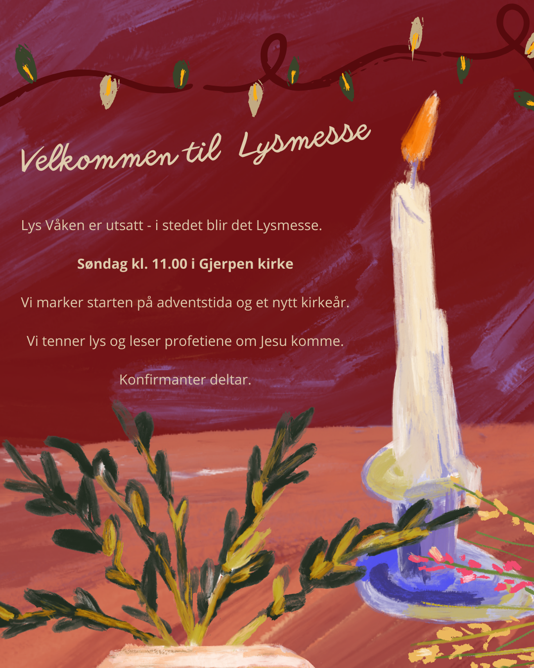 Velkommen til Lysmesse i Valebø kirke 1. søndag i advent - søndag 30/11 kl. 17.00.