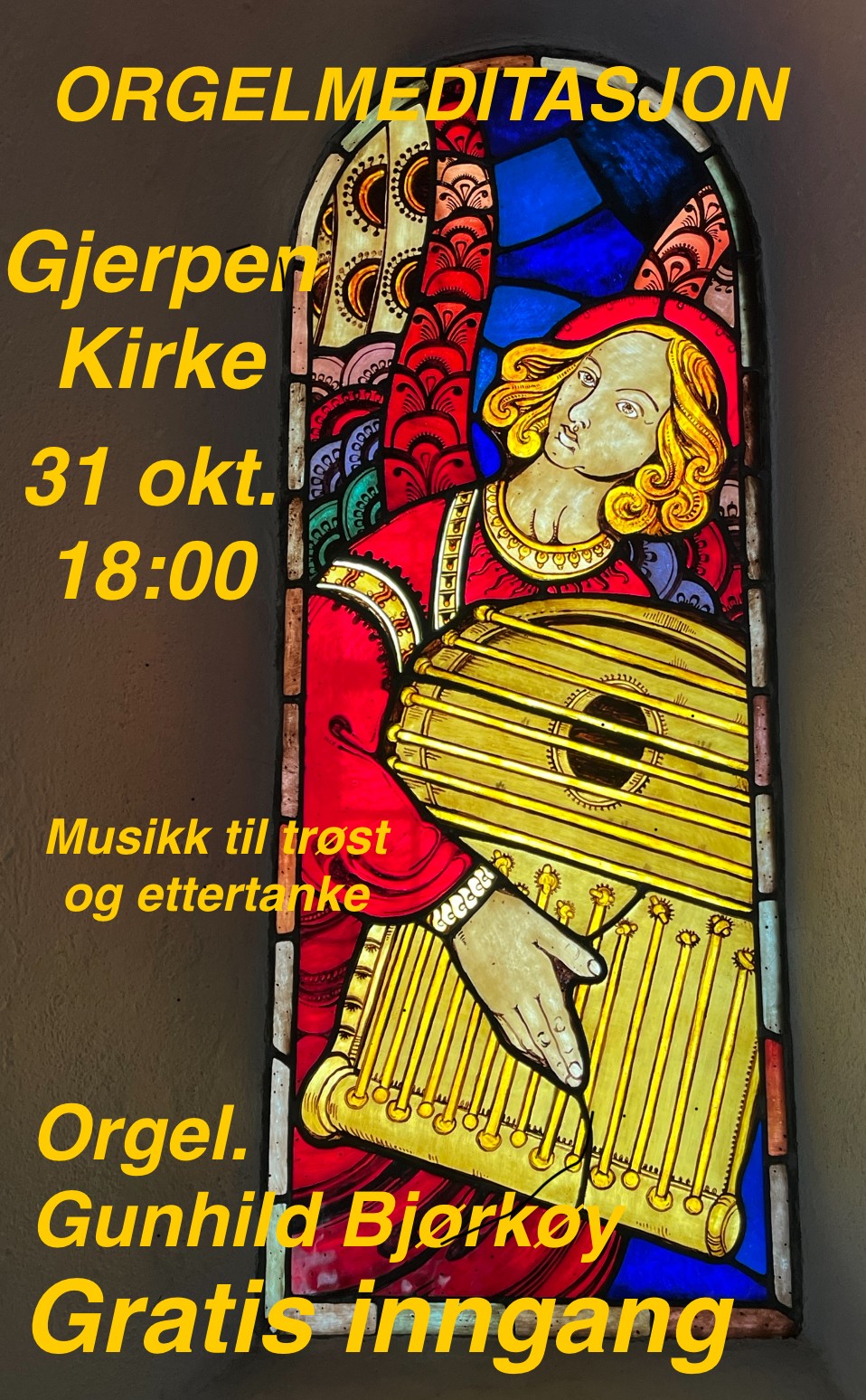 Velkommen til orgelmeditasjon i forbindelse med allehelgen, Gjerpen kirke 31. oktober kl. 18.00 Gratis inngang! Vår kantor Gunhild Bjørkøy spiller.
