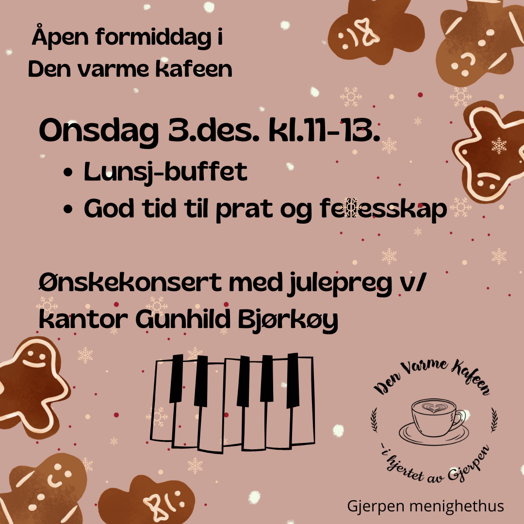 Rett etter gudstjenesten blir det grøtservering med kaffe og pepperkaker i peisestua på skolen.