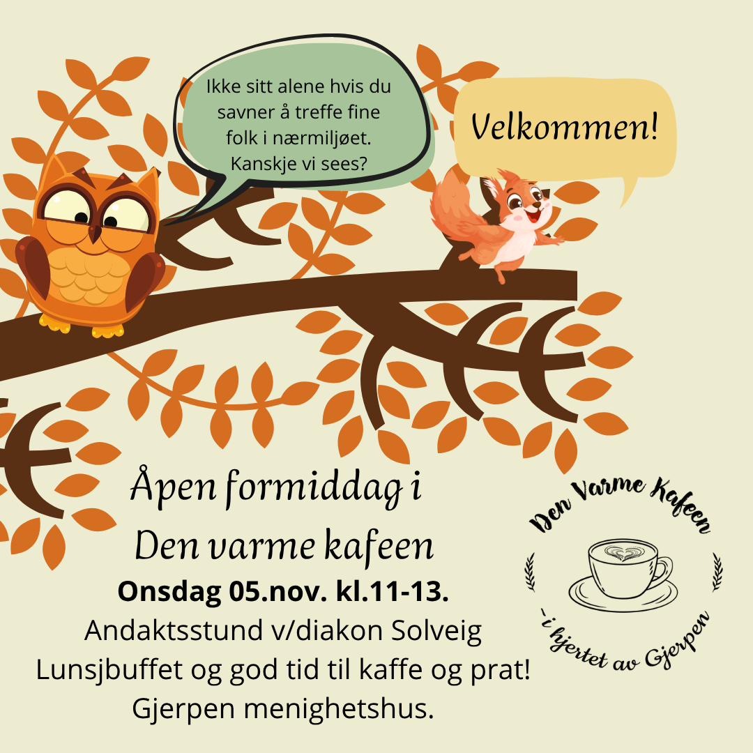 Velkommen til Åpen formiddag i Den varme kaféen, onsdag 5. november kl. 11-13.