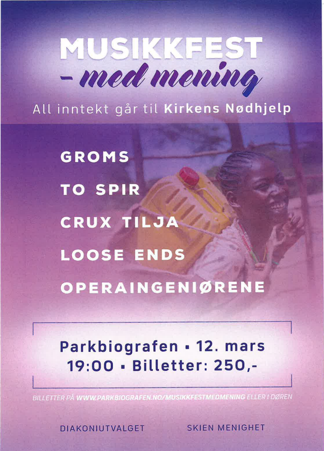 Velkommen til flott fastekonsert som samtidig støtter Kirkens Nødhjelp sitt viktige arbeid!